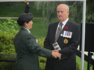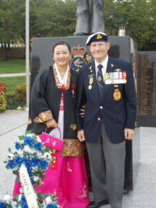 Lt. Cdr John Quinn is also a WWII Veteran landed on D-Day in Juno beach, France. During the Korean War, he served on HMCS Iroquois and killed by enemy artillery attack along with Able Seaman Elburne Baikie from Hamilton, Ontario. His son Charles Quinn, who lost his father at age 4, and he received the “Ambassador for Peace Medal” on behalf of his father in 2017.